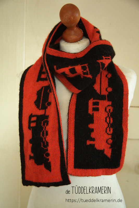 Das war definitiv mein bisher wildestes Projekt! Angefangen habe ich am 31. Oktober, das war ein Freitag, und beendet am 14. November, ebenfalls ein Freitag. Stricken konnte ich nur tagsüber, während Schatz in der Arbeit war, also an insgesamt 11 Tagen. Insgesamt stecken 61.344 Maschen in diesem Schal, ich habe also durchschnittlich etwas über 5.500 Maschen pro Tag gestrickt. Liebe Kinder, macht das bitte nicht nach, es ist tierisch anstrengend! Aber Schatz freut sich super über seinen Zug-Luft-Schal, und das ist die Hauptsache.