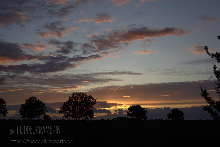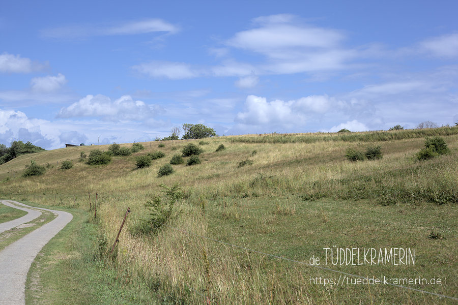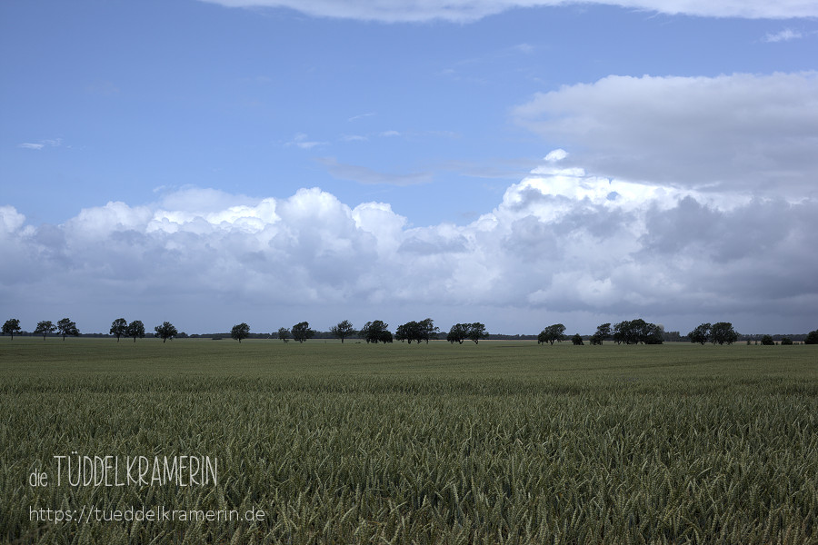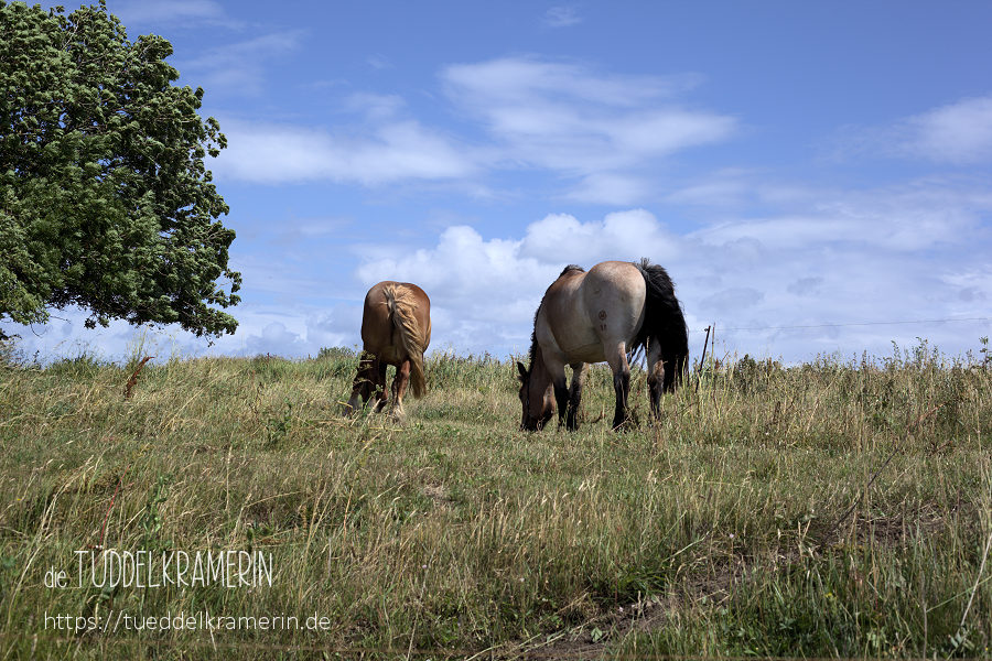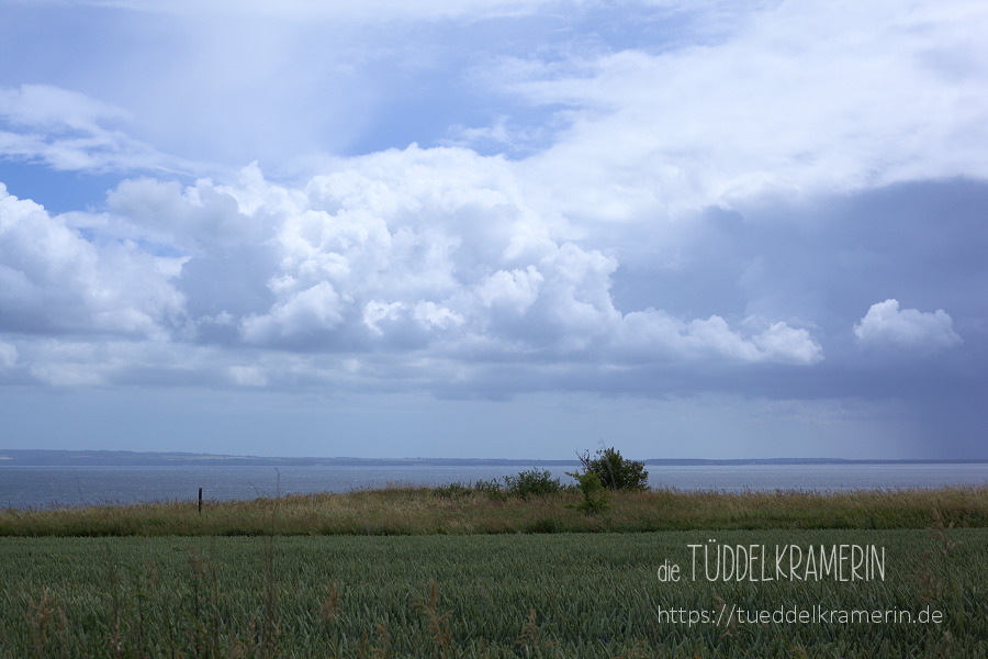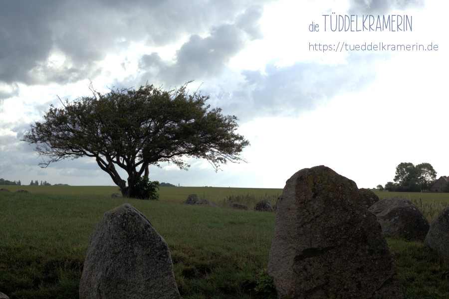 Ganz anders als vorher vorgestellt, weil längst nicht so flach, wie ich andere Küstenbereiche kenne, außerdem deutlich mehr bewaldet als erwartet. Wir hatten eine Unterkunft mitten zwischen Feldern gewählt, 200 m vom Meer entfernt, mit Fernblick aus allen Fenstern und der Möglichkeit, Phastos auch ohne Leine laufen zu lassen. Jeden Morgen noch vor dem Frühstück führte der erste Spaziergang einmal rund ums Großsteingrab Nobbin.
