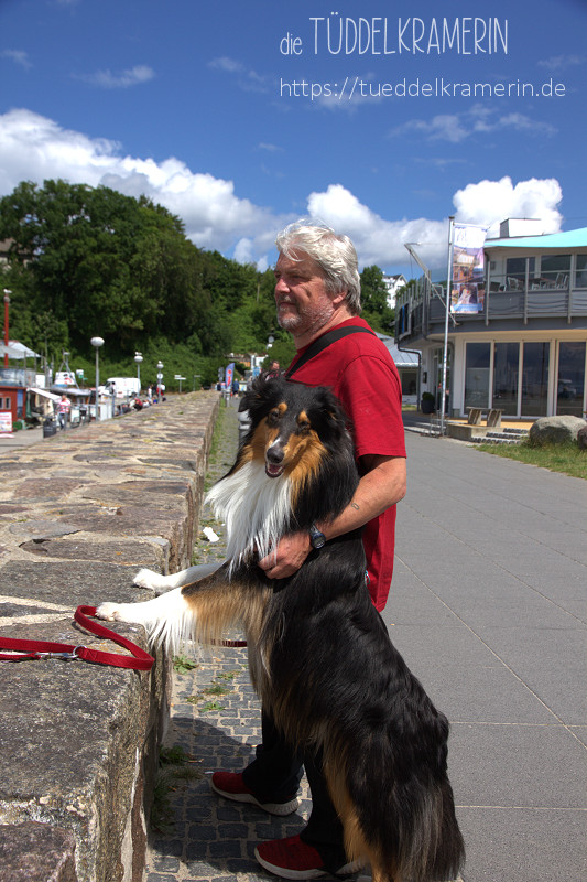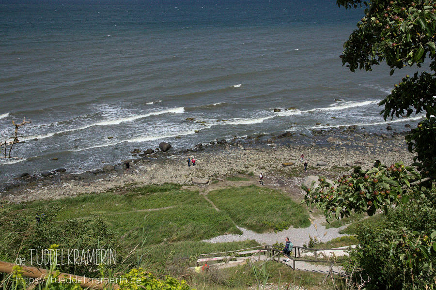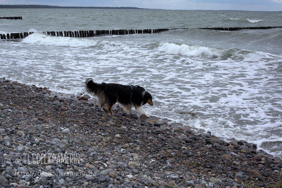 Wie das so ist auf einer Insel, ist das Meer eigentlich nie weit weg. Allerdings ist es auf Rügen nicht immer und überall leicht zu erreichen, weil Steilküsten. Es gibt Abgänge, für die man aber besser keine Höhenangst haben sollte. Natürlich gibt es auch wunderschöne Badestrände mit weißem Sand und Strandkörben, und extra Hundestrände. So konnte Phastos ausgiebig mit Hundekumpels spielen und auch ein bißchen planschen.