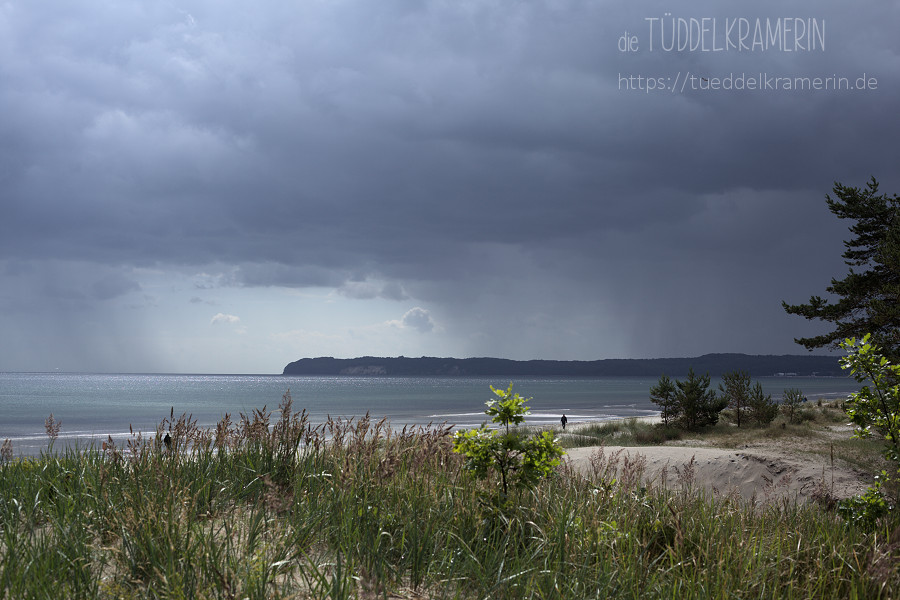 Und weil wir es sind, regnete es natürlich am Anreisetag, und die Fahrt zog sich ordentlich in die Länge, weil ein Teilstück der A19 wegen Bauarbeiten vollgesperrt und die Umfahrung entsprechend dicht war. Trotzdem kam irgendwann der Moment, als wir von Stralsund aus über die Brücke nach Rügen fuhren.
