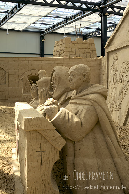 In Prora gibt es eine Sandskulpturenausstellung. 2023 steht sie unter dem Motto „Zurück ins Mittelalter“, und es ist wirklich beeindruckend, was man aus Sand alles machen kann. Es lohnt sich übrigens, zwei- oder sogar dreimal durchzulaufen, denn beim ersten Mal nimmt man gar nicht alle Details so wirklich wahr.